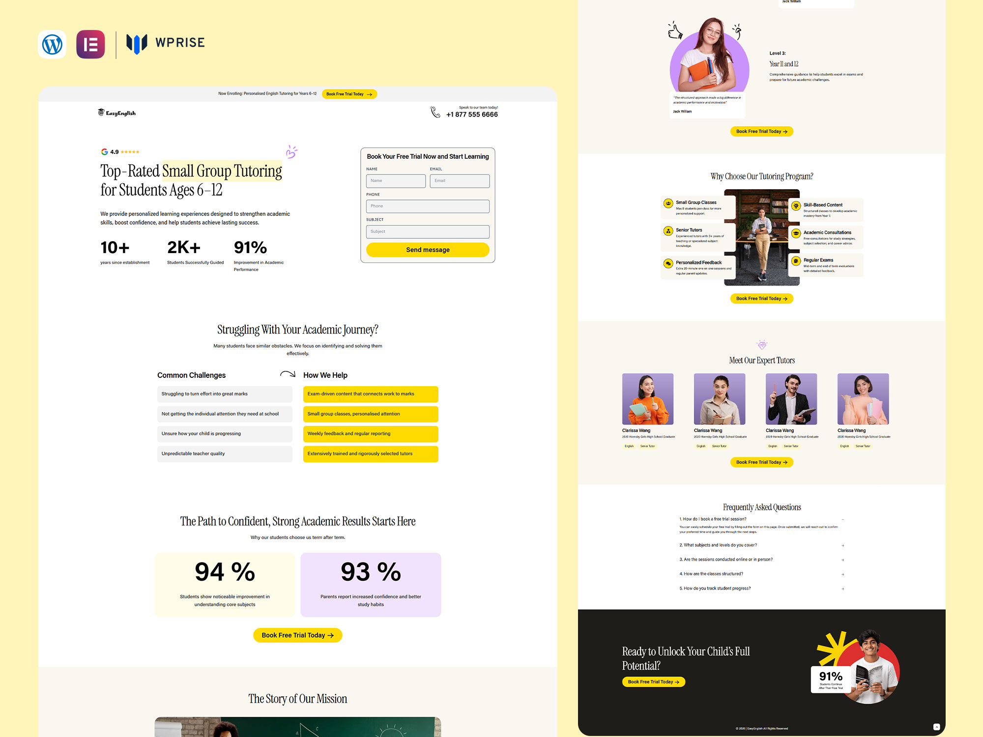 EasyEnglish is a clean Elementor English tutoring landing page template designed for tutors and coaching centers. It features SEO-friendly design, lead generation sections, and a one click demo importer.