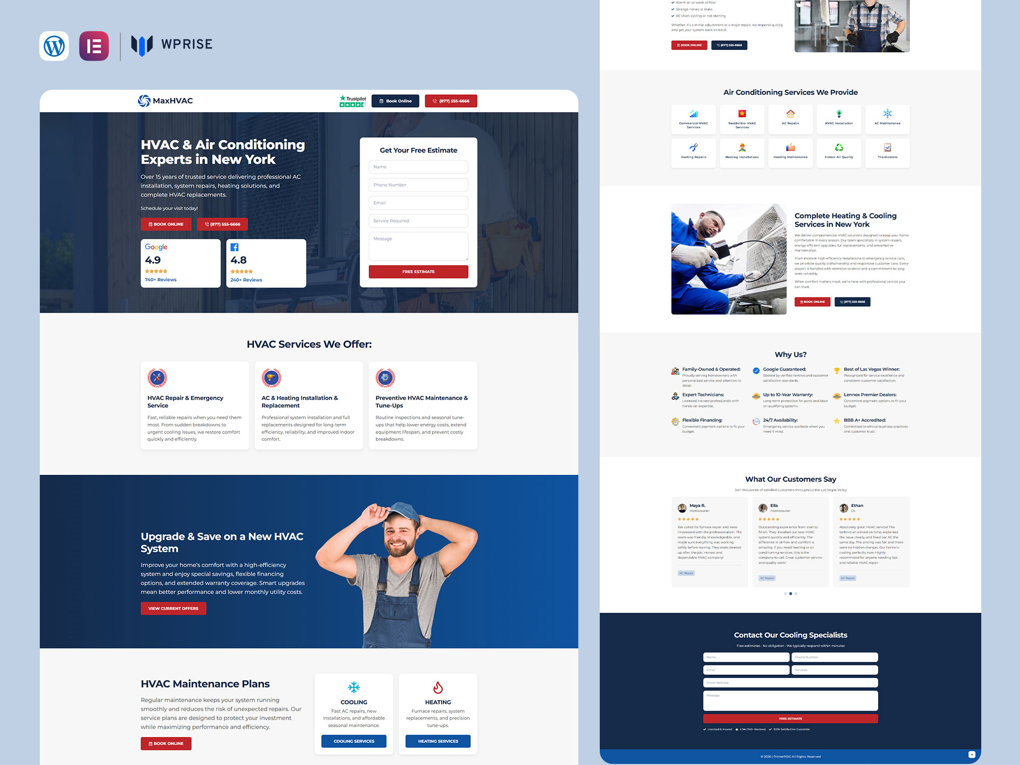 MaxHVAC is an HVAC & Repair Service lead generation landing page designed to capture more calls and service requests. Built with Elementor, it’s responsive, easy to customize, and optimized for high conversions.