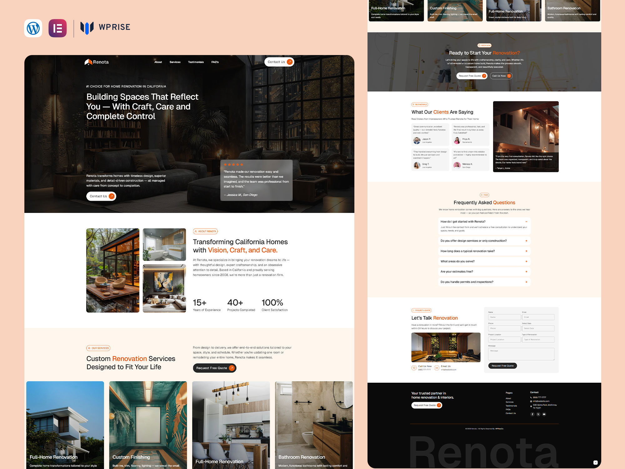 Renota is a clean home renovation landing page built with Elementor, designed to capture high-quality leads. It features clear sections, strong visuals, and a conversion-focused layout for renovation businesses.