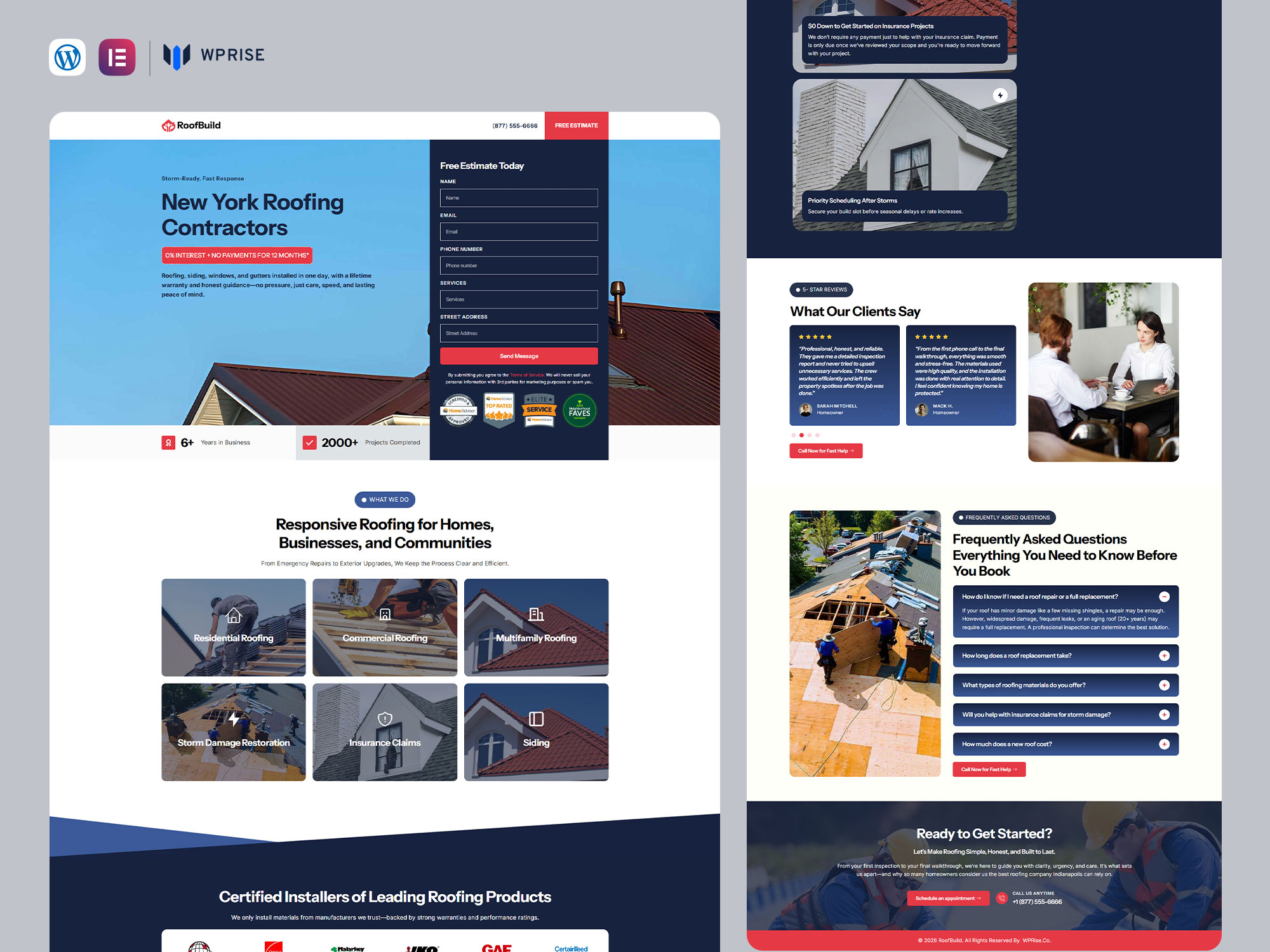 RoofBuild is a high-converting Roofing Lead Generation Landing Page built with Elementor to help contractors capture more calls and quote requests.